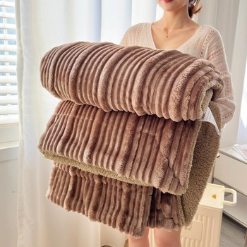 FF4826 cálido grueso hogar ropa de cama de felpa manta de franela de doble capa de invierno Sherpa Manta polar para cama sofá